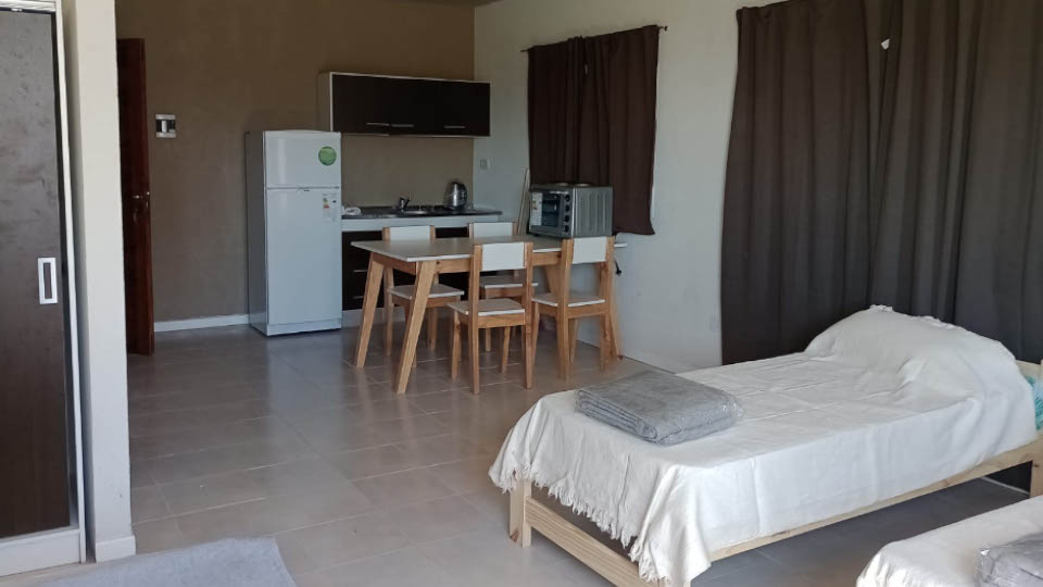 Cama matrimonial, 2 sofá cama, Cocina incorporada al ambiente, Heladera, Microondas, Mesa comedor y sillas, TV, Wifi y Baño completo.